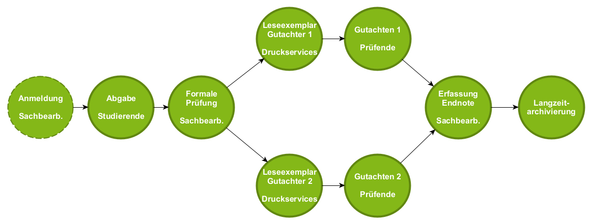 Die Prüfenden haben nach der formalen Prüfung umgehend Zugriff auf die Arbeit und können jederzeit auf das Dokument und die Anhänge zugreifen. Zusätzlich haben sie die Möglichkeit, Leseexemplare automatisch bei den Druckservices drucken zu lassen.